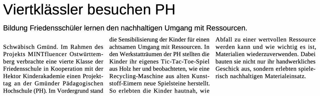 - Gmünder Tagespost (14.02.2025). Viertklässler besuchen PH.