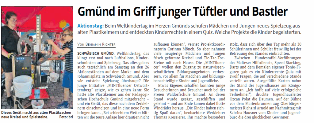 - Rems-Zeitung (22.09.2025). Gmünd im Griff junger Tüftler und Bastler