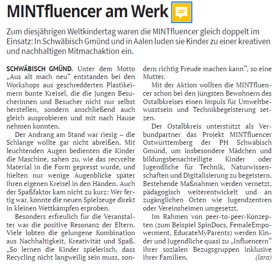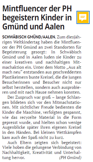 - Rems-Zeitung (04.10.2025). Mintfluencer der PH begeistern Kinder in Gmünd und Aalen